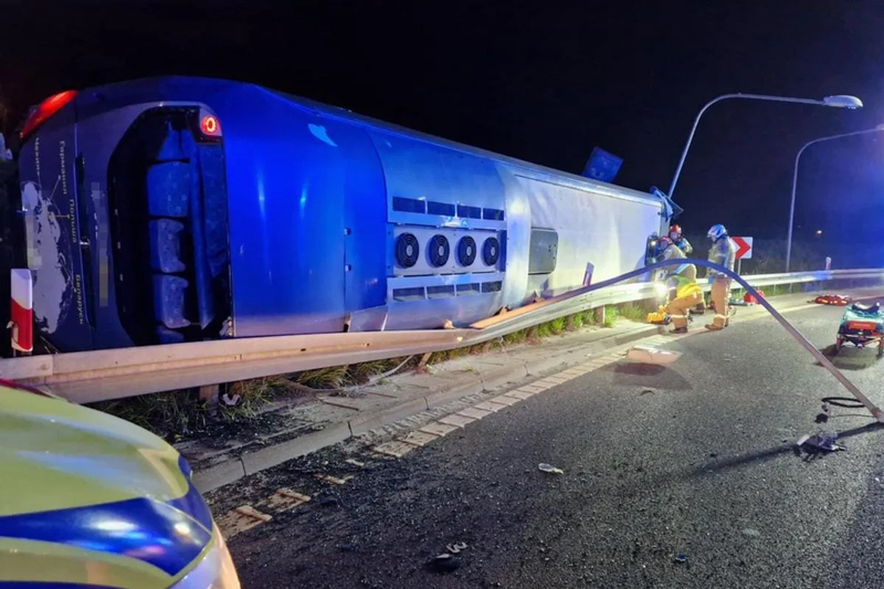 Пресс-секретарь МВД Яцек Добжиньский сообщил в соцсети Х, что 16 пассажиров автобуса, включая ребенка, были госпитализированы. Также пострадал водитель грузовика, столкнувшегося с пожарной машиной, и двое спасателей.