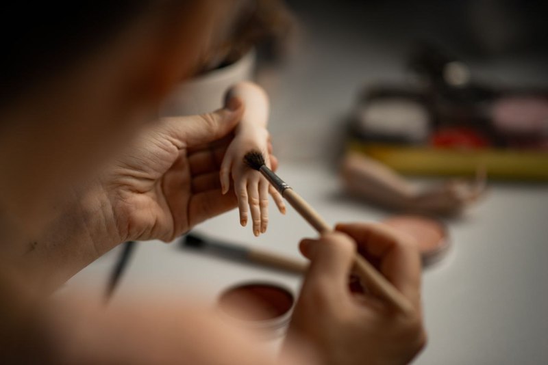 Сейчас я работаю с запекаемой полимерной глиной. Это материал очень серьезный и требовательный к автору. Особенно учитывая то, что все мои куклы создаются с нуля, без молдов и заготовок. Единственное исключение, которое я делаю, – это глазки и ресницы. Глаза сделаны из стекла, они изготавливаются на фабрике в Японии. А реснички продаются лентой – я отрезаю нужный фрагмент и приклеиваю.