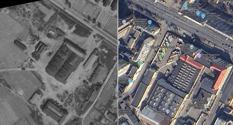 Более того, изучение современных космоснимков показало, что основной объем довоенной СТО сохранился до наших дней и что сейчас там находится музей городского транспорта при «Минсктрансе».