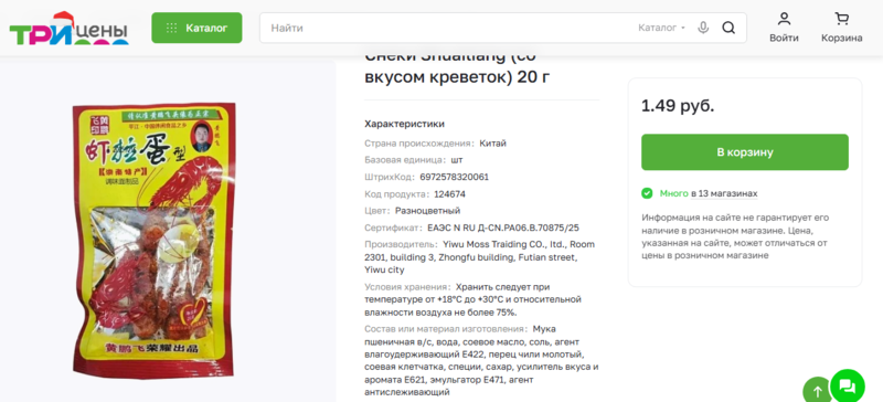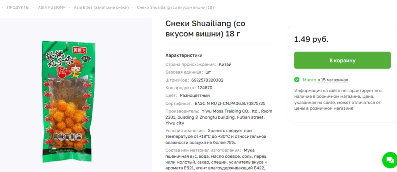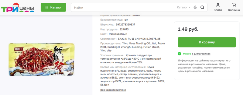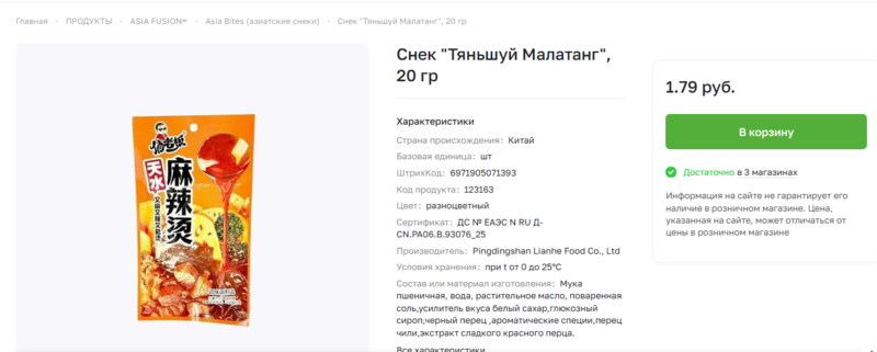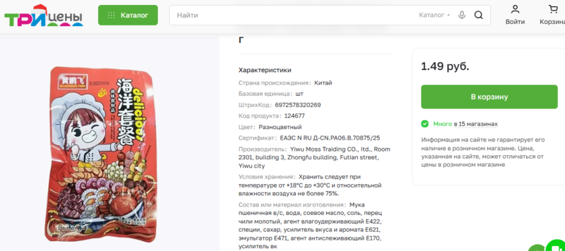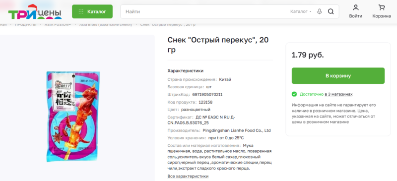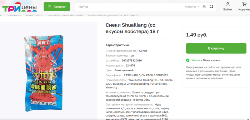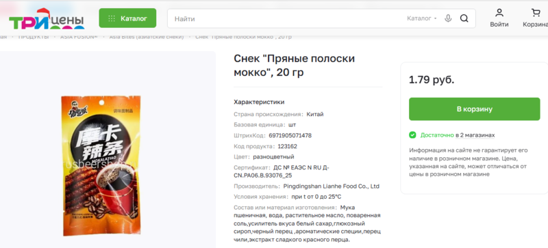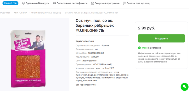 Госстандарт запретил в Беларуси немало азиатских снеков из-за содержания в них вредных примесей, однако, некоторый из них по-прежнему доступны в некоторых магазинах. В частности, в сети магазинов низких цен «Три цены», который уже попадал в поле зрения Blizko.by на продаже «запрещенки».