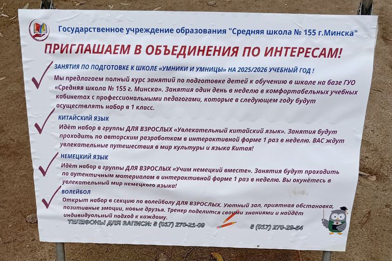 Во вторник Blizko.by рассказывал, что минская школа №155 в микрорайоне Юго-Запад выставила стенд-объявление с грубыми ошибками в заголовке. Объявление приглашало детей и взрослых на подготовительные курсы и занятия по интересам. В заголовке было написано так: «Приглашаем в обьединения по интерессам!»