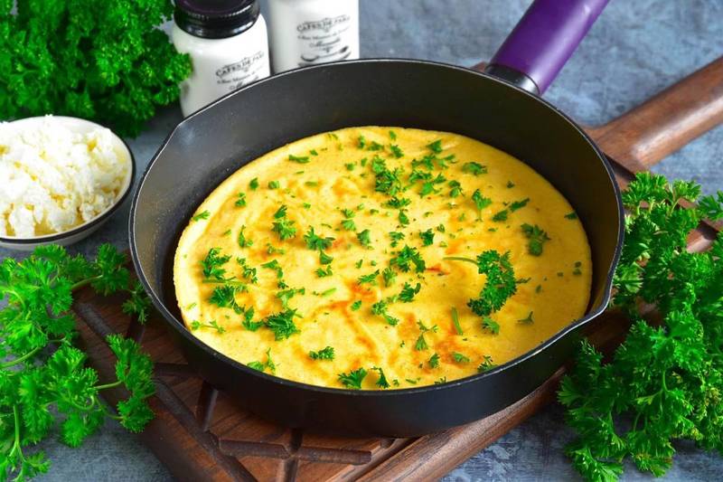 Вариантов приготовления жареного творога много. Можно добавить этот продукт в омлет или скрэмбл, приготовить яично-творожную лепешку и завернуть в нее овощи или выложить жареный творог с яйцом на хлеб.