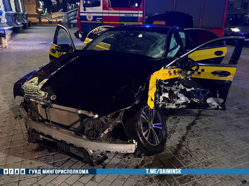 Авария произошла вечером 1 февраля. По предварительным данным, 30-летний водитель автомобиля Mercedes-Benz AMG GT 43, двигаясь по проспекту Независимости, выехал на перекресток с улицей Ленина на запрещающий красный сигнал светофора и столкнулся с Mercedes-Benz E200. Вторая легковушка от удара выехала за пределы проезжей части.