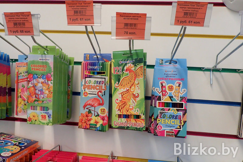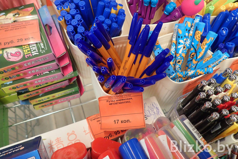 Самая ходовая тетрадь на 12 листов стоит везде 21 копейку, у нас — 18 копеек; есть прекрасные пеналы по 2 рубля — люди в шоке: откуда такая цена? Как может шариковая ручка стоить 17 копеек? Как может набор из 12 цветных карандашей стоить 70 копеек? Покупатели переспрашивают у кассира: вы тут еще одну цифру не потеряли?
