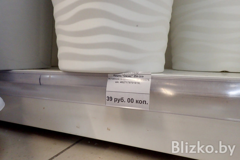 Почти всегда цена в наших магазинах даже ниже, чем на маркетплейсах, — минимум 90% товаров у нас дешевле. Вот у нас большое 25-литровое цветочное кашпо «Оазис» стоит 39 рублей. Смотрите, вбиваю эту же модель на популярном российском маркетплейсе — минимум 56 рублей. Или вот сковорода Victoria: у нас 28 рублей, в интернете такая же — минимум 46, да и то уже со скидкой. То есть, у нас значительно дешевле, чем в популярных маркетплейсах.