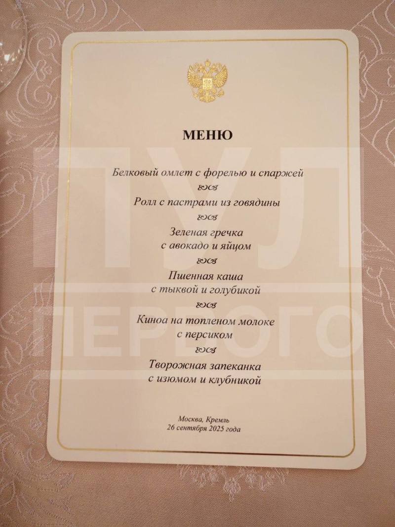 В ходе визита Александра Лукашенко в Россию состоялся рабочий завтрак с Владимиром Путиным. Эксклюзивным меню поделился телеграм-канал «Пул Первого».