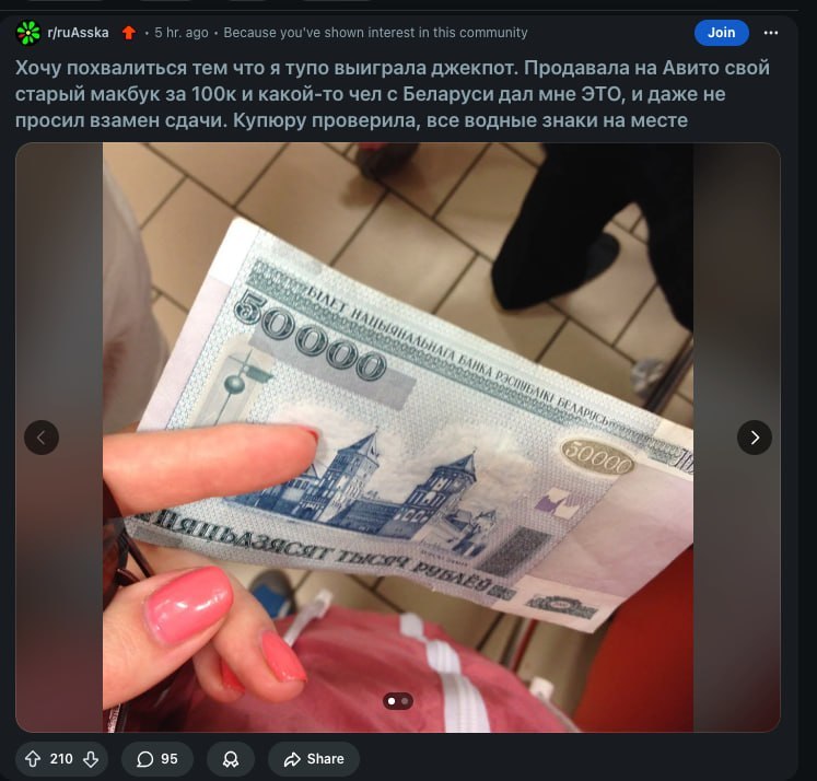 В русскоязычном интернете произошел необычный случай мошенничества. Девушка продала ноутбук белорусу за круглую сумму, только вот желаемых денег получить не сможет. Скриншоты появились в соцсети Reddit.