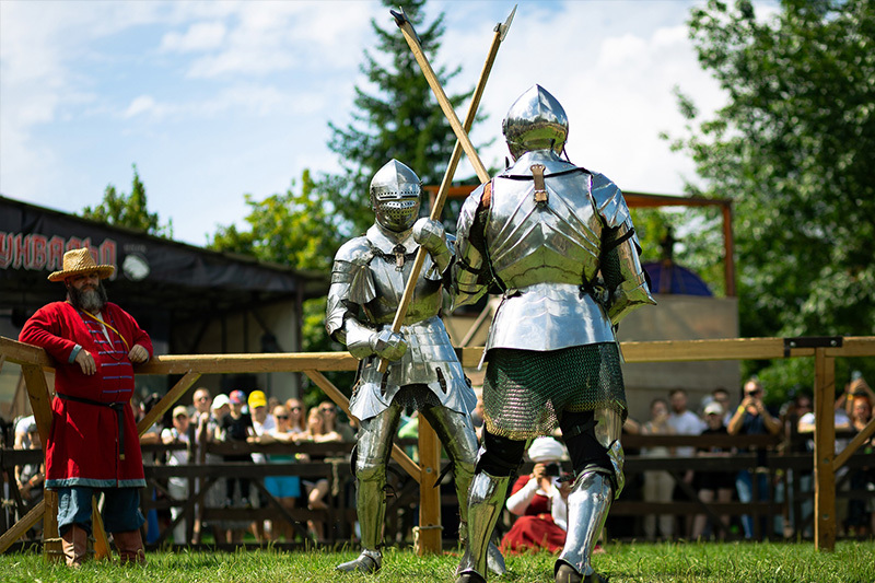 - Рыцарские турниры: пешие поединки, бои в формате щит-меч, турнир алебардистов, копейщиков, латный турнир по правилам XV века.