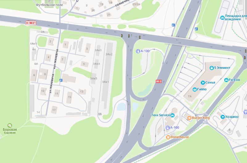 Это территория бывшего военного городка на улице Маневича, вблизи МКАД у выезда на Логойск. Здесь около десятка двухэтажных «сталинок». Десятилетиями это была закрытая территория, а когда ее открыли для всех, то она долго оставалась медвежьим углом. Несколько лет назад сюда даже приезжала автолавка.