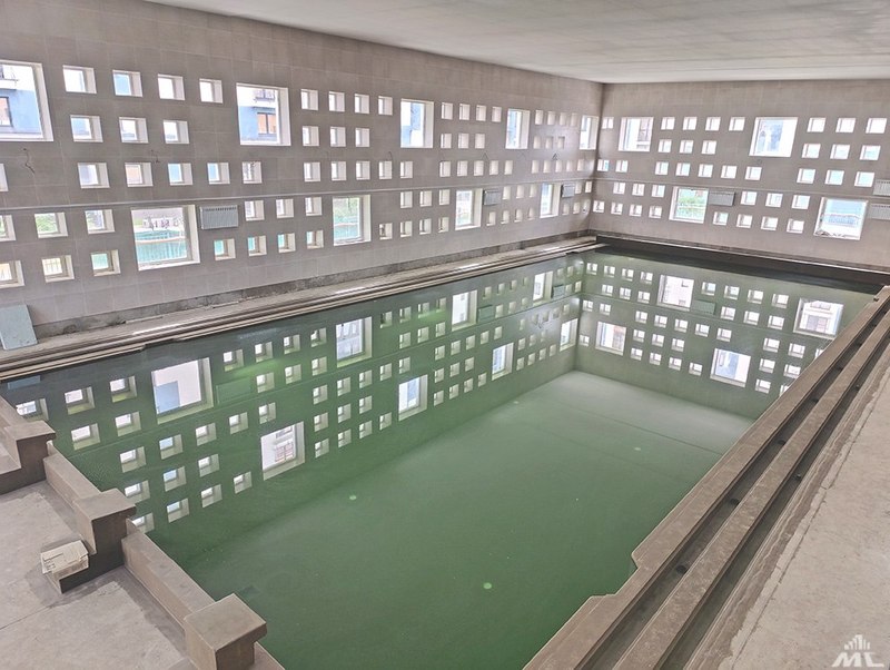Малый бассейн (6х10 м) уже выложен плиткой, а в большом (25х11 м) – проводятся испытания гидроизоляции. После этого плиточники приступят к облицовке чаши.