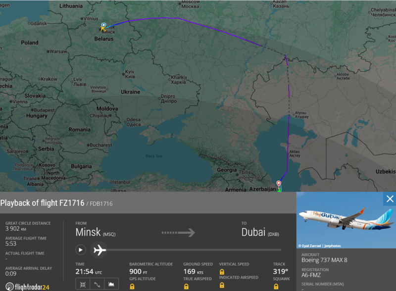 Авиарейс компании FlyDubai, который вылетел из Минска сегодня в 00:30, вместо пункта назначения приземлился совсем в другой стране. А именно — в Азербайджане.