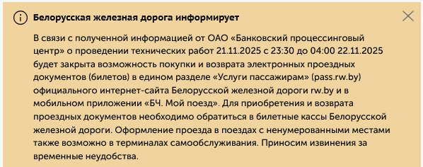 БЖД сообщает, что сегодня ночью нельзя будет купить билеты через интернет. Причина — проведение технических работ Банковским процессинговым центром.