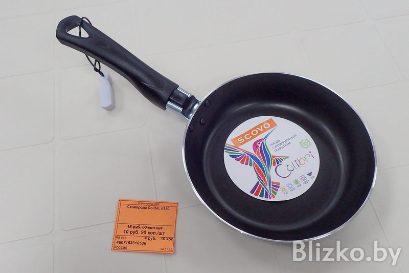 Малая сковорода с антипригарным покрытием Scovo Colibri диаметром 18 сантиметров. Сегодня стоит ровно 15 рублей, а завтра и еще четыре дня — 10 рублей 90 копеек.