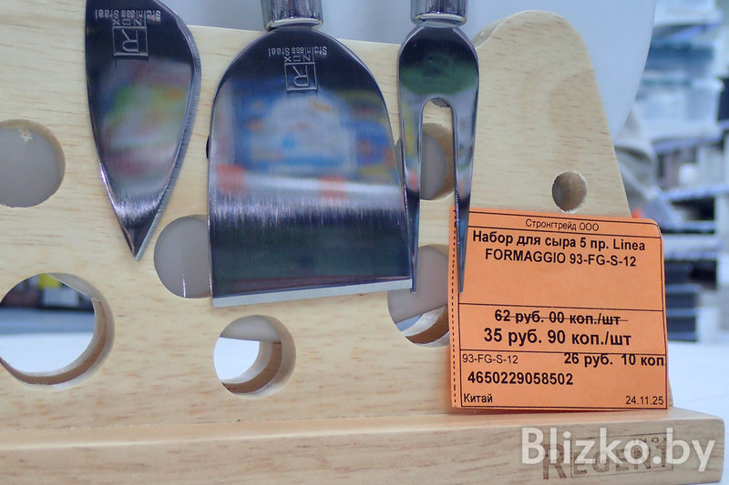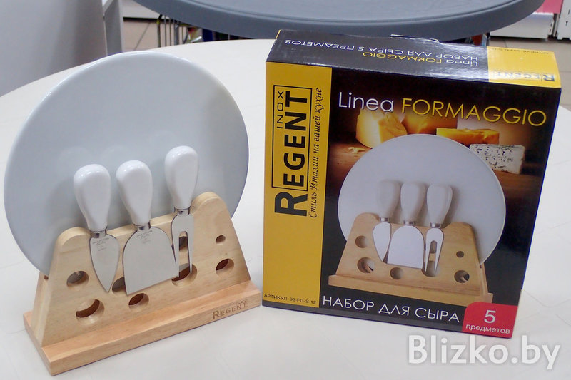 Набор для сыра Regent Formaggio из пяти предметов: нож, лопаточка, вилка, тарелка и подставка. Сегодня он стоит 62 рубля, но уже завтра вы можете его купить за 35 рублей 90 копеек.