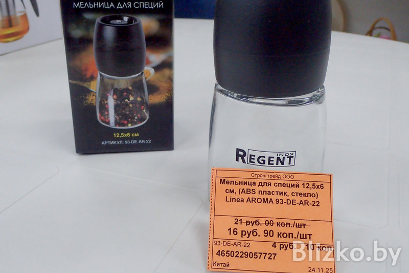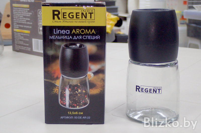 Мельница для специй Regent Aroma высотой 12,5 и диаметром 6 сантиметров. Пока еще продается за 21 рубль, а со среды — уже за 16 рублей 90 копеек.