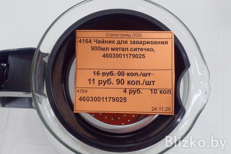 Чайник заварочный объемом 900 мл с металлическим стаканчиком-ситечком. Сегодня ровно 16 рублей, а завтра за 11 рублей 90 копеек.