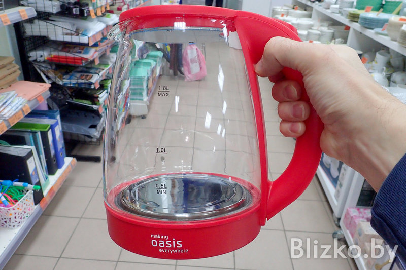Электрочайник со стеклянной колбой Oasis объемом 1,8 литра. Завтра вы его купите за приятные 32,97 рубля.