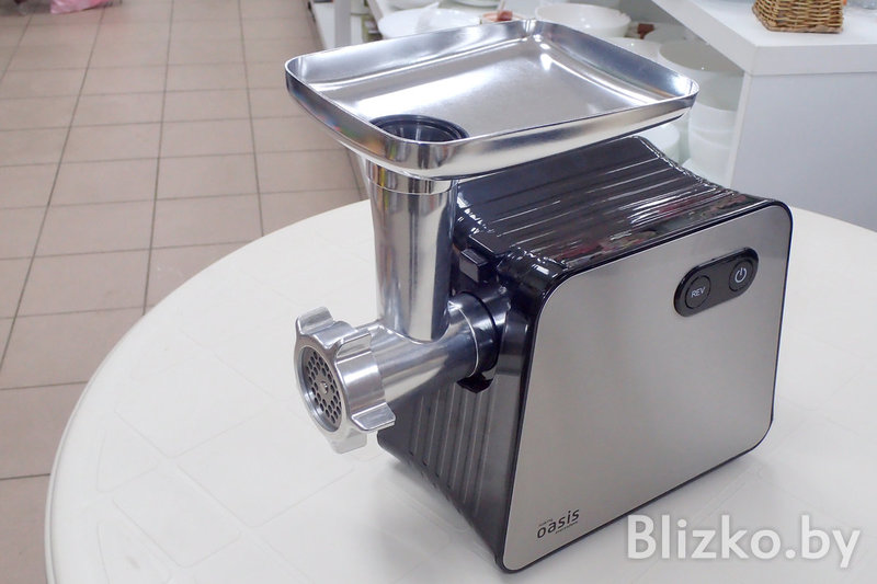 Электромясорубка Oasis с металлическим корпусом и лотком. Сегодняшняя цена 189 рублей 07 копеек, завтрашняя цена — 162 рубля 06 копеек.