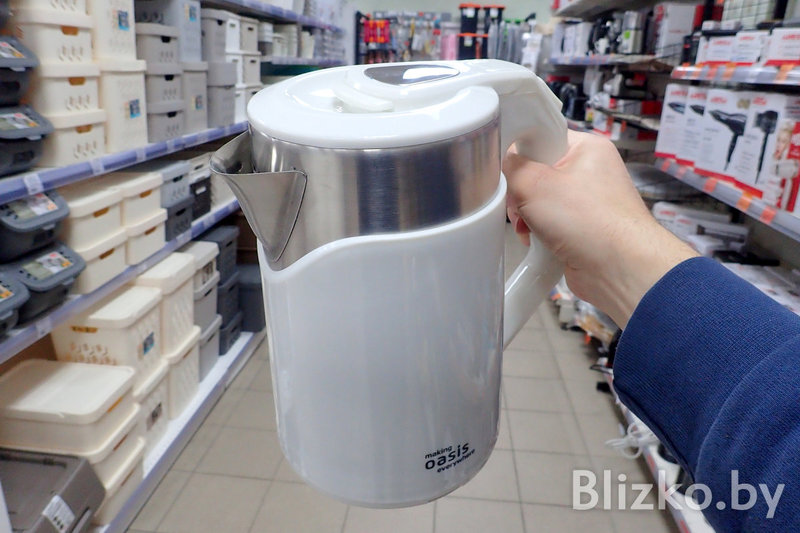 Электрочайник с металлической колбой Oasis объемом 1,8 литра. Цена, начиная с 26 ноября, — 41,03 рубля.