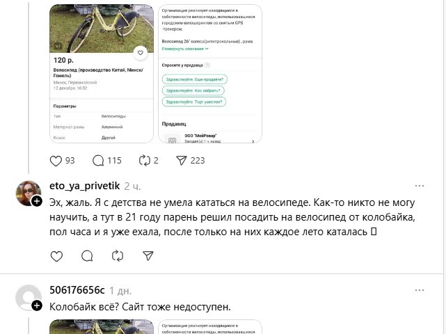 Официальный сайт компании сейчас недоступен. Представители организации подтвердили, что распродажа действительно идет и связана она с реорганизацией, которая должна вскоре произойти. Поскольку классические велосипеды постепенно вытесняются электросамокатами, сервис может либо изменить формат, либо прекратить работу уже в следующем сезоне.