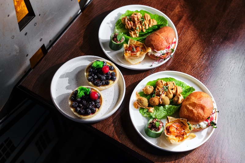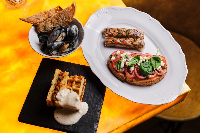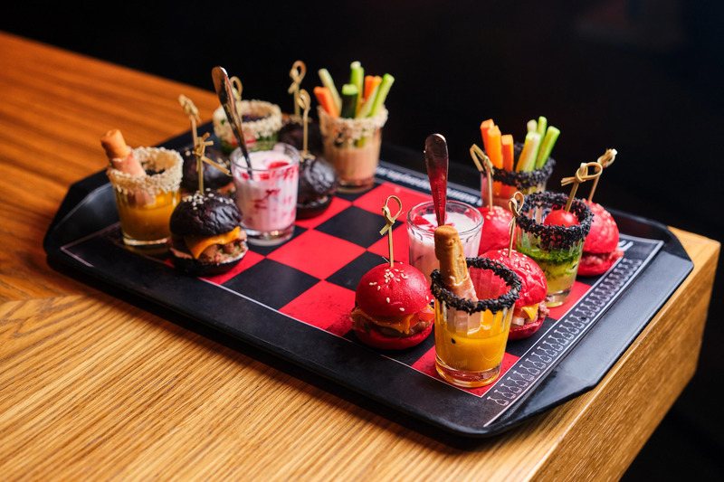 - Мини-бургеры с бейби осьминогом, томатной сальсой и сыром чеддер