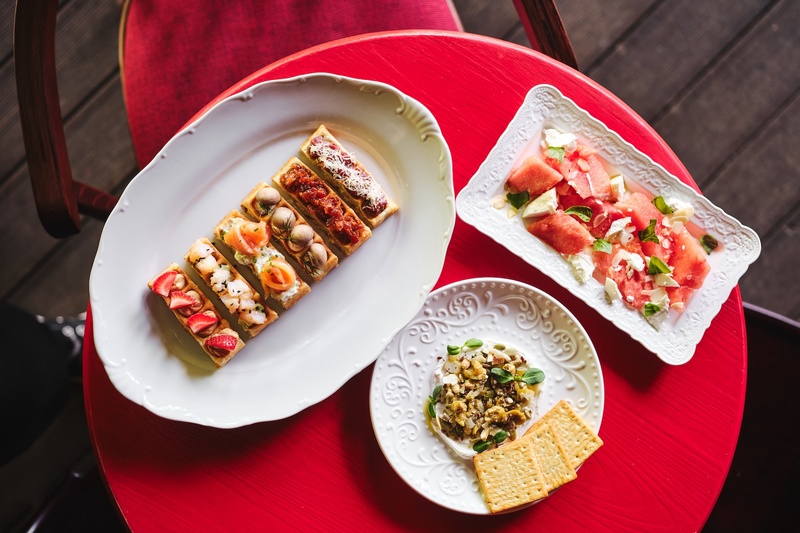 - Брускетта с ростбифом, бальзамической вишней и французской горчицей