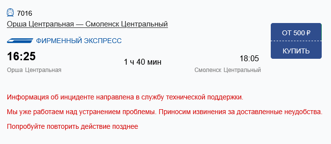 Но при попытке купить билет на сайте ЦППК выдается ошибка: