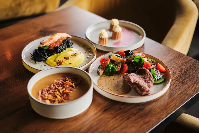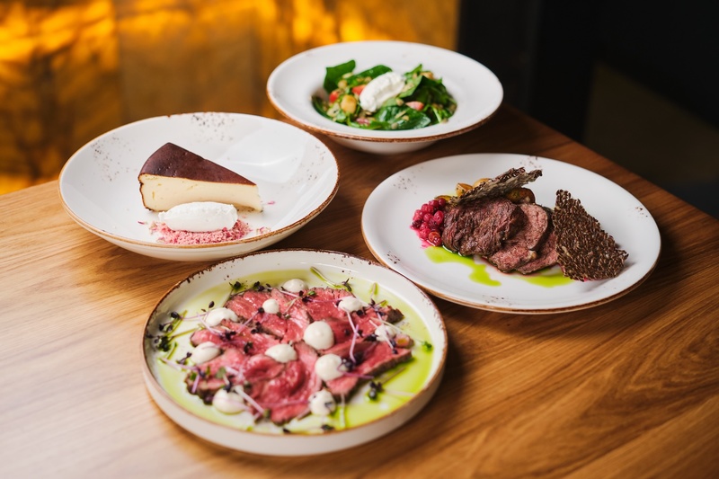 - Стейк рибай, баклажаны Цай Дао с муссом из угря