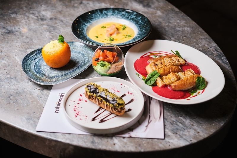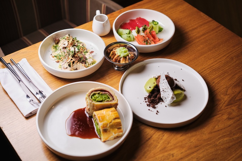 - Утиная грудка в малиновой пене в дуэте с пирогом «фило-груша-дор блю»