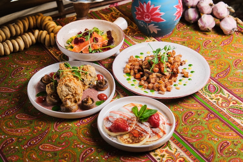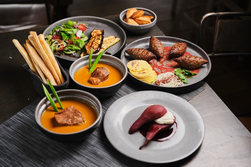 - Крем-суп «Харчо» (вариация на тему знаменитого супа «Харчо» с томленой свининой)