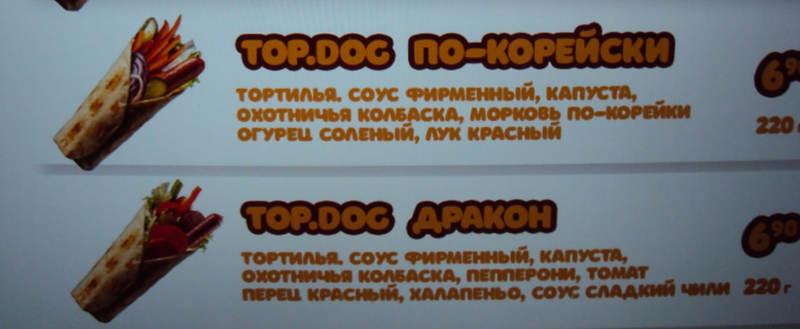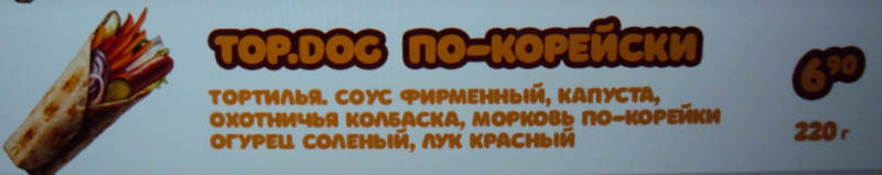 Но уже из другого ролла Top.dog по-корейски из фирменной моркови куда-то пропала «с».