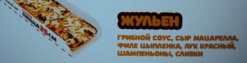 С шампиньонами тоже беда: по какой-то причине в пицце «Жульен» они стали «шампеньонами», хотя в соседней пицце «Грибная ветчина» название ингредиента написано правильно.