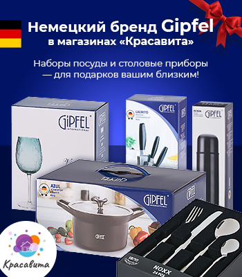 Для тех, кто любит радовать близких и себя кулинарными шедеврами, отличным подарком станет набор качественной немецкой посуды. Сеть магазинов «Красавита» в своем ассортименте как раз располагает товарами бренда Gipfel, который более 25 лет ассоциируется с качеством, надежностью и стильным дизайном. Стоит отметить, что бренд сотрудничает только с «Красавитой», поэтому не стоит упускать уникальный шанс приобрести хорошую кухонную утварь, а также изысканные бокалы и роскошные столовые приборы по приемлемой цене.