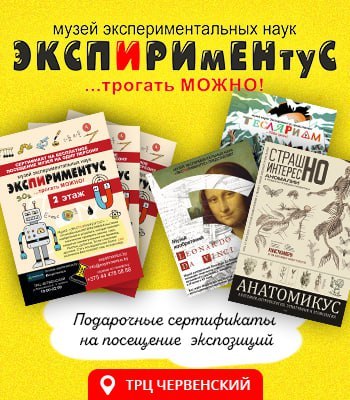Для тех, кто любит исследовать окружающий мир, проводить время с семьей и с пользой — интерактивный Музей науки «Экспириментус» оптимальный вариант. Наука, анатомия и электричество становится настоящим приключением! Более 200 экспонатов — трогайте, крутите, запускайте экспонаты — и удивляйтесь, как просто можно понять сложное. Это настоящая игровая лаборатория от 5 до 99 лет.