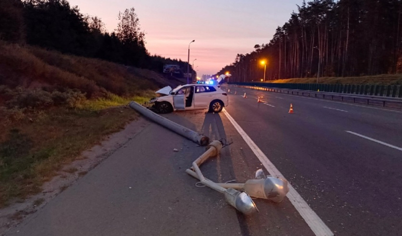 По данным следствия, ночью 8 сентября 39-летний водитель такси, двигаясь на автомобиле BYD по МКАД, сместился на обочину, где въехал в опору наружного освещения, которая, судя по фото, от удара разломилась и упала.