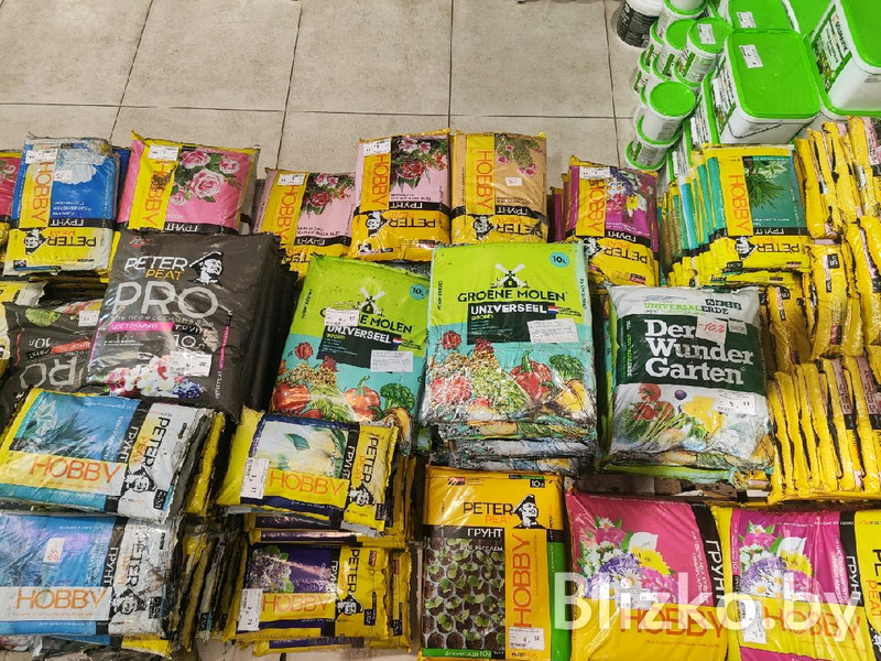 В магазине представлено большое количество удобрений до 5 рублей. Грунт также продается по приятой стоимости. Литр можно приобрести всего 1,5 рубля, 5 литров — 3,5, 10 литров — 6,8. Также имеются большие упаковки в 60 литров за 36,5 рубля.