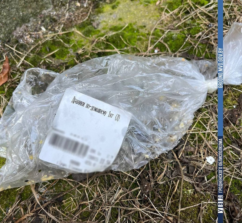 На фото, предоставленных милицией, виден пакет с этикеткой, гласящей, что в пакете хранились драники по-домашнему.