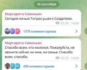 Добавим и то, что главный редактор RT Маргарита Симоньян ранее также сообщила, что проходит лечение от рака. В начале сентября она рассказывала, что у нее диагностирована «страшная, тяжелая болезнь», она перенесла операцию.
