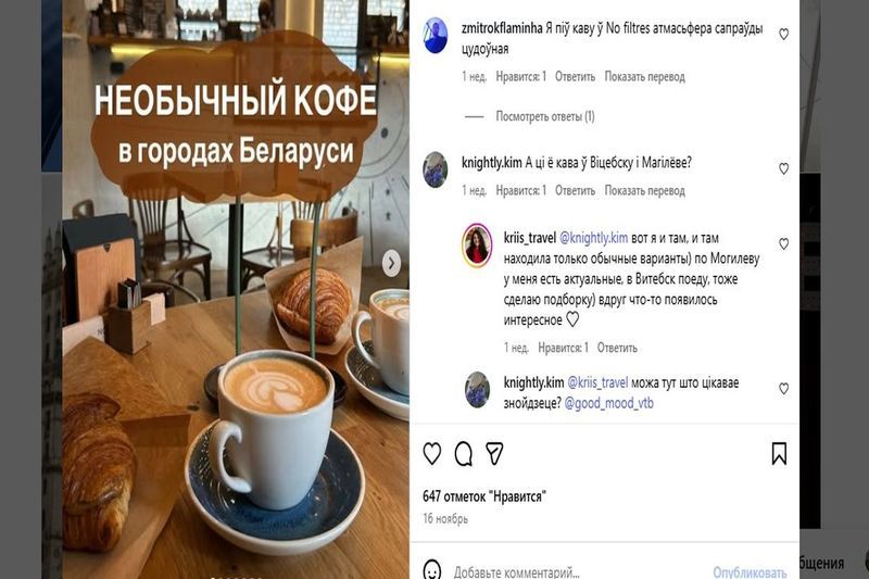 Столица удивляет сосновым капучино и патриотичным кофе с рогачевской сгущенкой. Не любите сгущенку – попробуйте другие виды патриотизма, например, кофе Всеслава Чародея или кофе Адама Мицкевича.