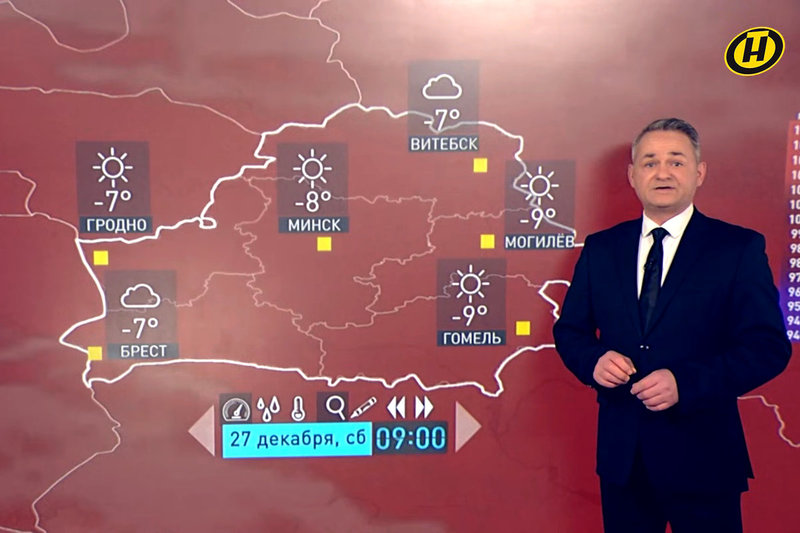 В середине недели существенных осадков не ожидается. Ночью и местами утром будет туманно, на дорогах в некоторых районах гололедица. Влажность до 80%. В среду ночью ожидается от -2°C до -7°C, днем — от -1°C в Бресте до -8°C в Витебске.