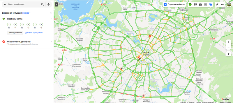 При этом, если верить сервису, который отслеживает дорожно-транспортную ситуацию в Минске в режиме онлайн, то в целом, по состоянию на 10 утра ситуация на дорогах столицы спокойная — уровень заторов в Минске оценивается на «троечку».
