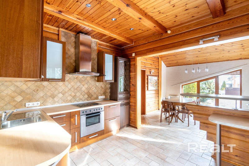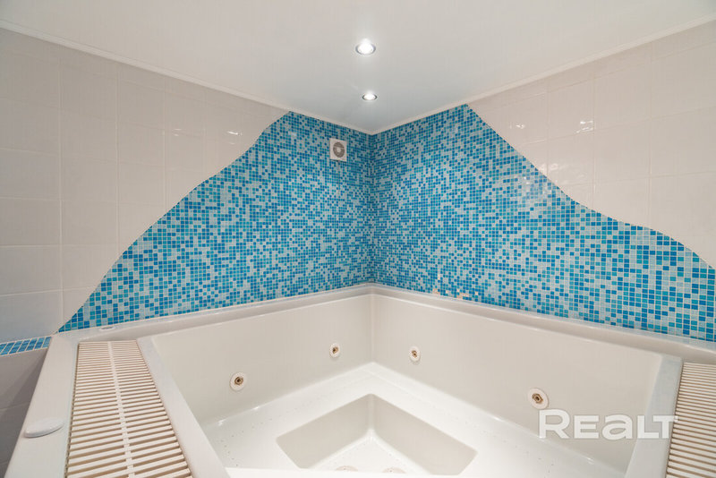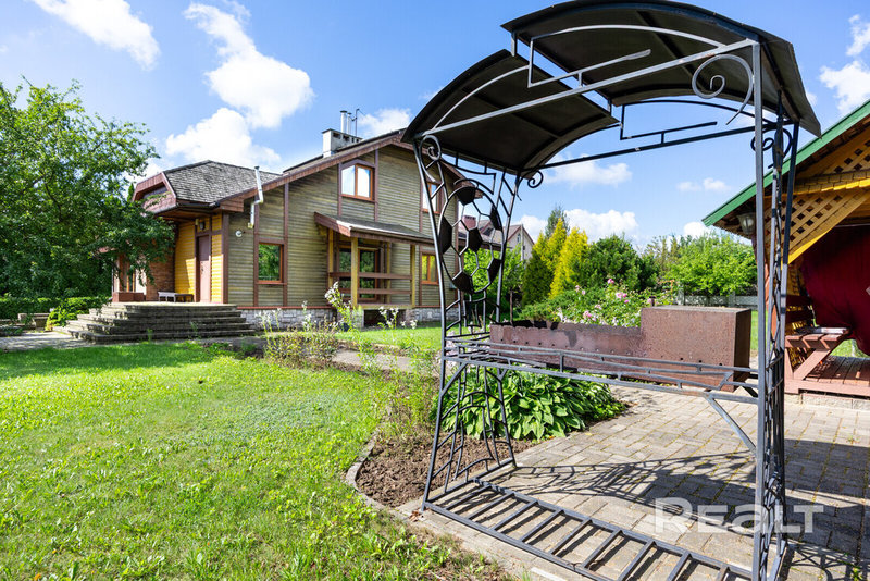 Как сообщает Realt.by, общая площадь дома составляет 224 квадратных метра, жилая — 147. На первом этаже расположены гостиная с эркером, кухня-столовая, санузел, прихожая и жилая комната. На втором этаже — три спальни и санузел. В цоколе оборудована зона отдыха с сауной, джакузи и бассейном.