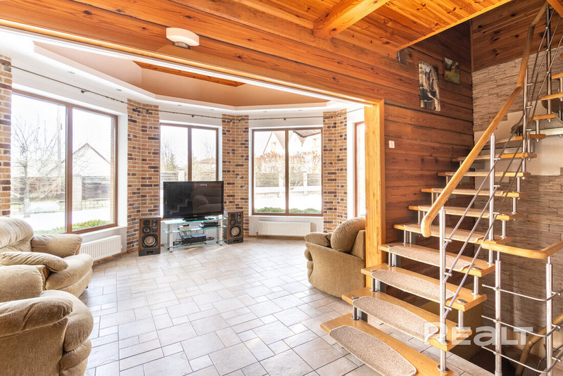В деревне Дуброва Логойского района выставлен на продажу деревянный двухэтажный дом с современным интерьером. Он расположен на высоком берегу Дубровского водохранилища, в 20 минутах езды от Минска, рядом с горнолыжными курортами и спортивными комплексами.