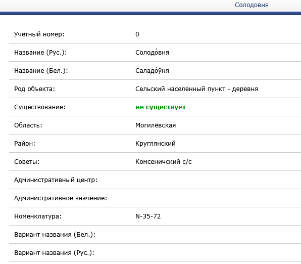 Перестала существовать деревня Солодовня в Комсеничском сельсовете Круглянского района Могилевской области.