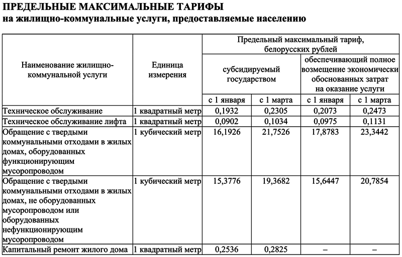 В случае капремонта дома субсидированный тариф за 1 кв. м установлен с 1 января в размере 0,2536 рубля, с 1 марта — 0,2825 рубля. Предельный максимальный тариф на услуги по капремонту в многоквартирном доме, обеспечивающий полное возмещение экономически обоснованных затрат, с 1 января по 28 февраля включительно равен 0,6546 рубля без налога на добавленную стоимость за 1 кв. м общей площади нежилого помещения в месяц. С 1 марта по 31 декабря включительно — 0,7292 рубля без НДС.