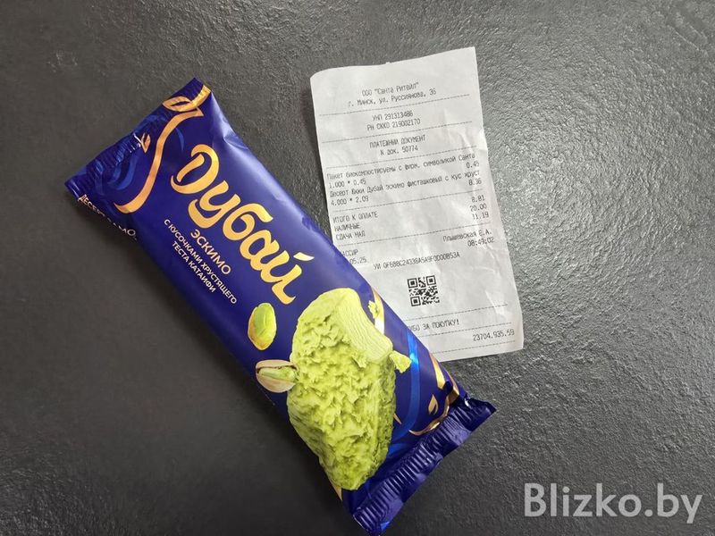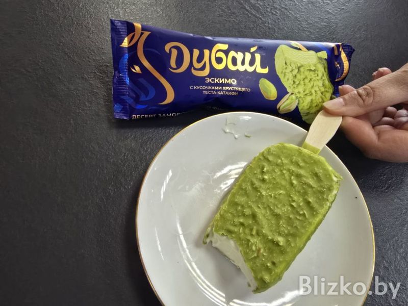Тем временем в магазинах Минска появилось новое лакомство, которое однозначно понравится некоторым ценителям прохладных десертов — эскимо «Дубай» отечественного, между прочим, производства.