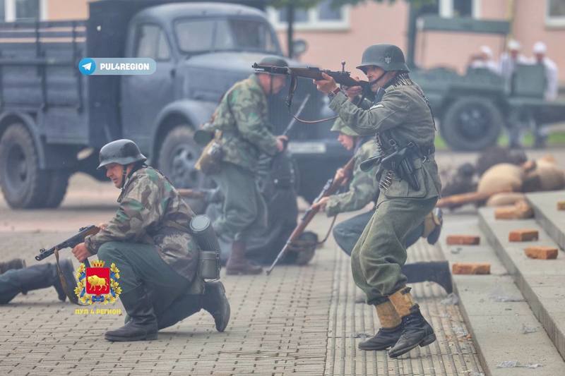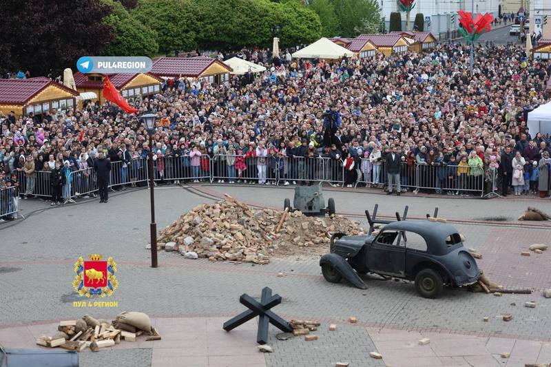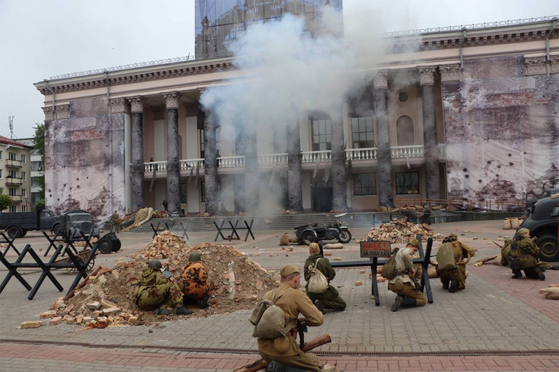В Гродно прошла реконструкция взятия Рейхстага. На главной площади города развернулось настоящее сражение, а взрывы пиротехники, имитирующие артиллерийский огонь, и клубы дыма добавляли реализма.
