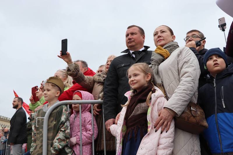 Как и в Берлине 1945 года, когда перед солдатами выступала Лидия Русланова − гродненские артисты исполнили любимые песни военных лет, такие как «Темная ночь», «Синий платочек», «Катюша» и, «День Победы».