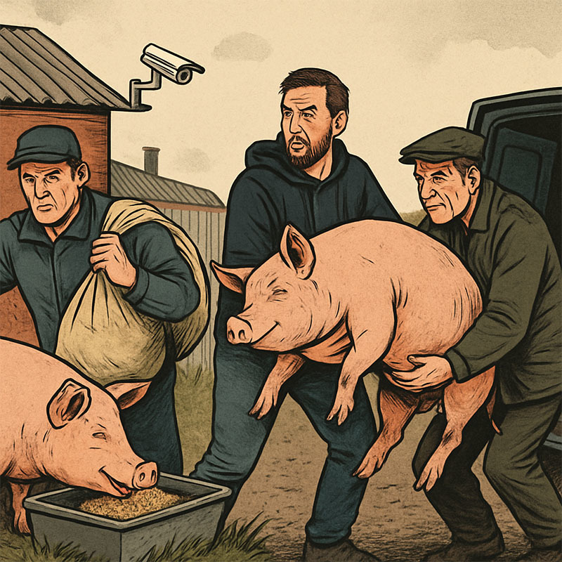 Со временем аппетит сторожа вырос — он предложил подельникам забирать с фермы и живых свиней. Зная, где находятся камеры, троица действовала аккуратно: заезжали на личном авто в его смену, выбирали незаметный путь, грузили животных и уезжали.