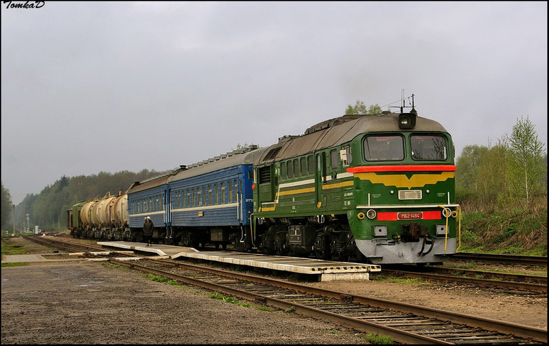 Пока пассажирское движение по линии не закрыли, здесь ходит единственный (причем единственный уже много-много лет) грузопассажирский поезд. Что это значит? То, что к тепловозу М62 прицеплены одновременно и пассажирские, и товарные вагоны.